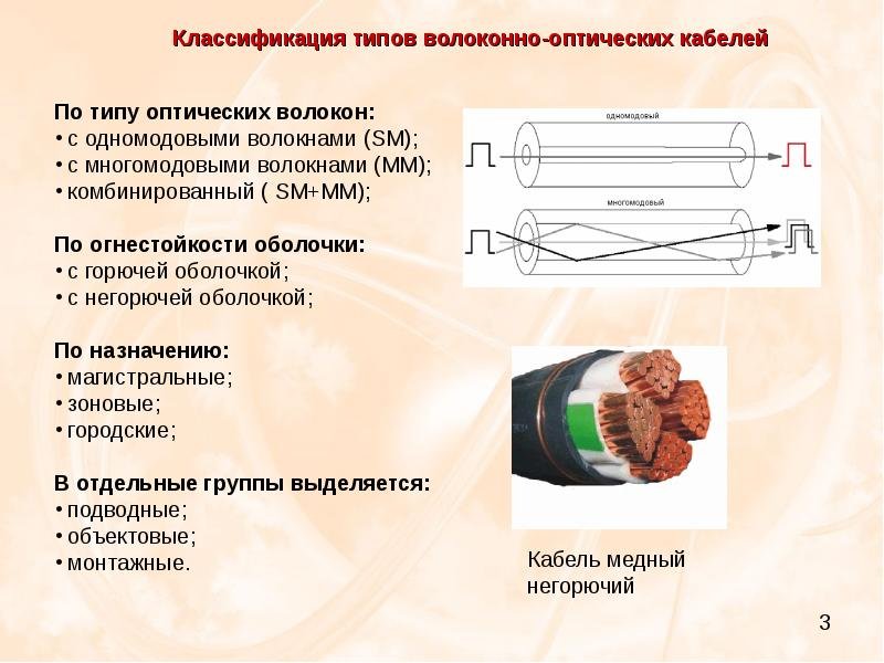 Типы, виды оптического кабеля. Классификация оптоволокна