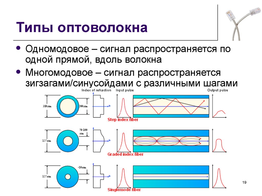 - Передают данные с использованием только одного режима светового луча. Подходят для длинных дистанций (до 100 км и более). Используются в магистральных сетях и для межгородских соединений.