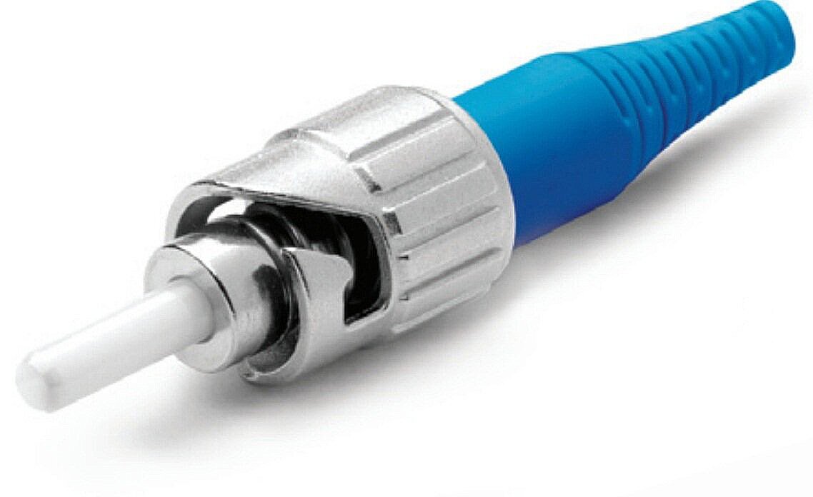 Оптический разъём ST (Straight Tip) считается несколько устаревшим, но всё ещё встречается на многих объектах. Он имеет металлический корпус с байонетным креплением и керамической сердцевиной диаметром 2,5 мм. Фиксация в оптической розетке осуществляется посредством резьбового соединения типа BNC.