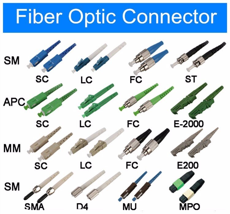 Во-первых, указывается тип разъёма, который может быть представлен такими обозначениями, как SC, FC, LC или ST.