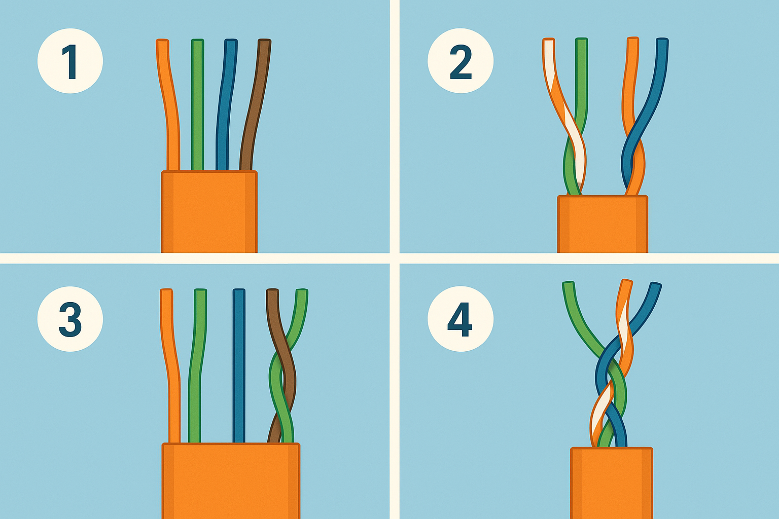 Шаг витой пары влияет на уровень затухания сигнала и перекрестных наводок. Если шаг скрутки слишком велик, это может снизить эффективность компенсации помех, что ведет к ошибкам в передаче и нестабильной работе сети. В то же время, чрезмерно плотная скрутка усложняет процесс производства и увеличивает жесткость кабеля, что может создать трудности во время монтажа.