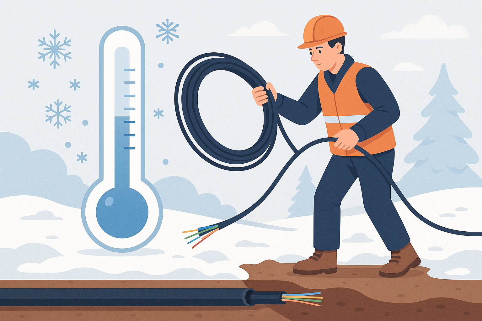 Согласно установленным техническим требованиям, монтаж оптического кабеля должен проводиться при строго определённых температурных условиях, которые имеют ключевое значение для безопасности и долговечности инженерных систем.