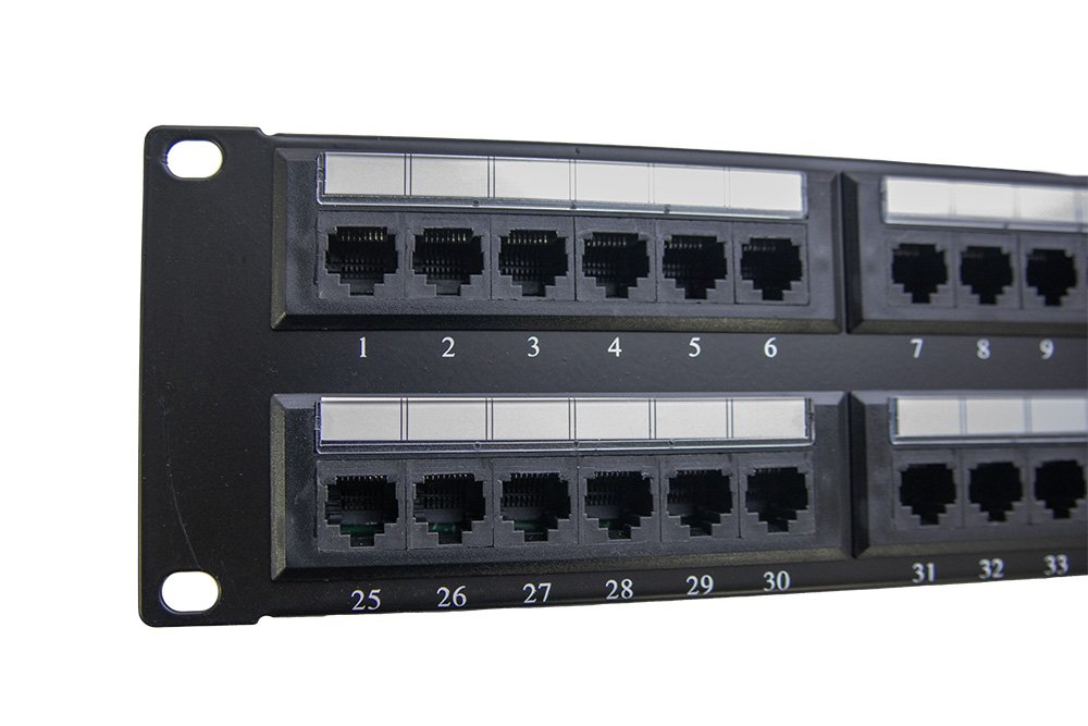 - В основном патч панель на 24 порта имеет высоту 1U, а на 48 портов высота составляет 2U.