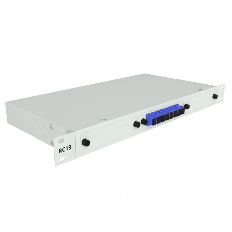 Описание RC19 ШКОС-У-19-1U-8-SC/UPC-9/125 Кросс оптический 19" стоечный 1U на 8 портов SC/UPC 9/125мкм укомплектованный оптический бокс (пигтейл SC 9/125-8шт, розетка SC-8шт, КДЗС-8шт)