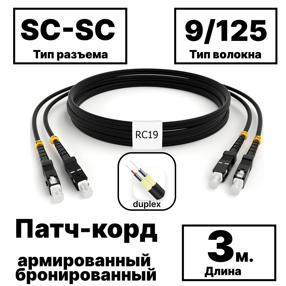 Описание и Характеристики RC19 PC-ARM-2x3,0-2SC/UPC-2SC/UPC-SM-3м-LSZH-BK Патч-корд оптический армированный бронированный duplex SC-SC 9/125 (G.657A1) одномодовый SM (3.0мм) LSZH, цвет черный, 3м купить недорого в интернет-магазине «Анбик»