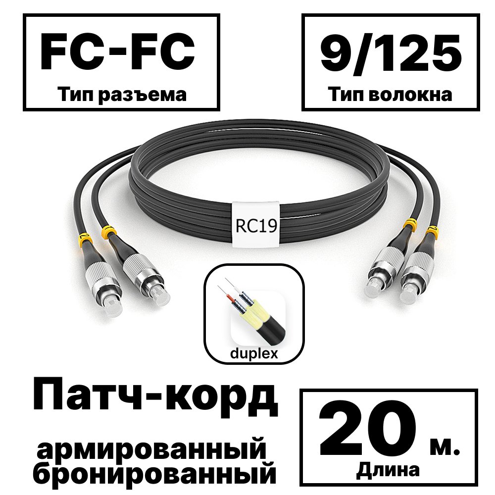 Описание и Характеристики RC19 PC-ARM-2x3,0-2FC/UPC-2FC/UPC-SM-20м-LSZH-BK Патч-корд оптический армированный бронированный duplex FC-FC 9/125 (G.657A1) одномодовый SM (3.0мм) LSZH, цвет черный, 20м купить недорого в интернет-магазине «Анбик»
