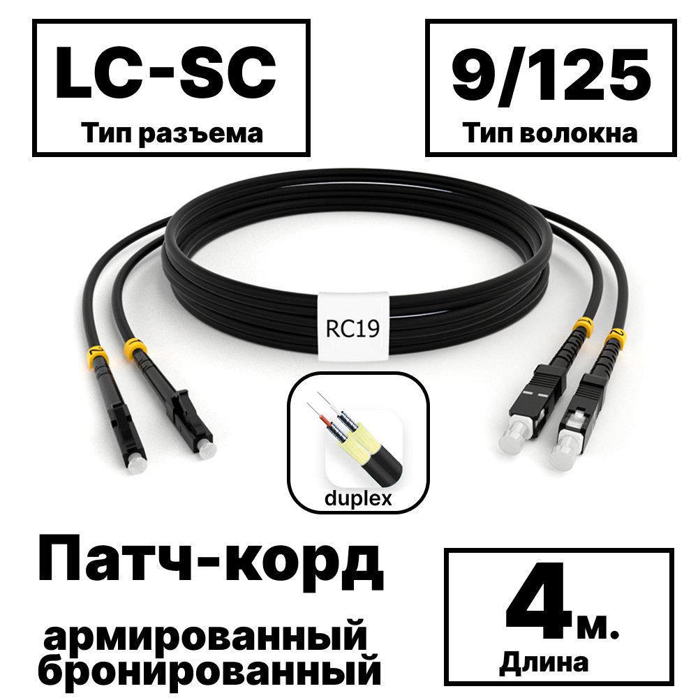 Описание и Характеристики RC19 PC-ARM-2x3,0-2LC/UPC-2SC/UPC-SM-4м-LSZH-BK Патч-корд оптический армированный бронированный duplex LC-SC 9/125 (G.657A1) одномодовый SM (3.0мм) LSZH, цвет черный, 4м купить недорого в интернет-магазине «Анбик»