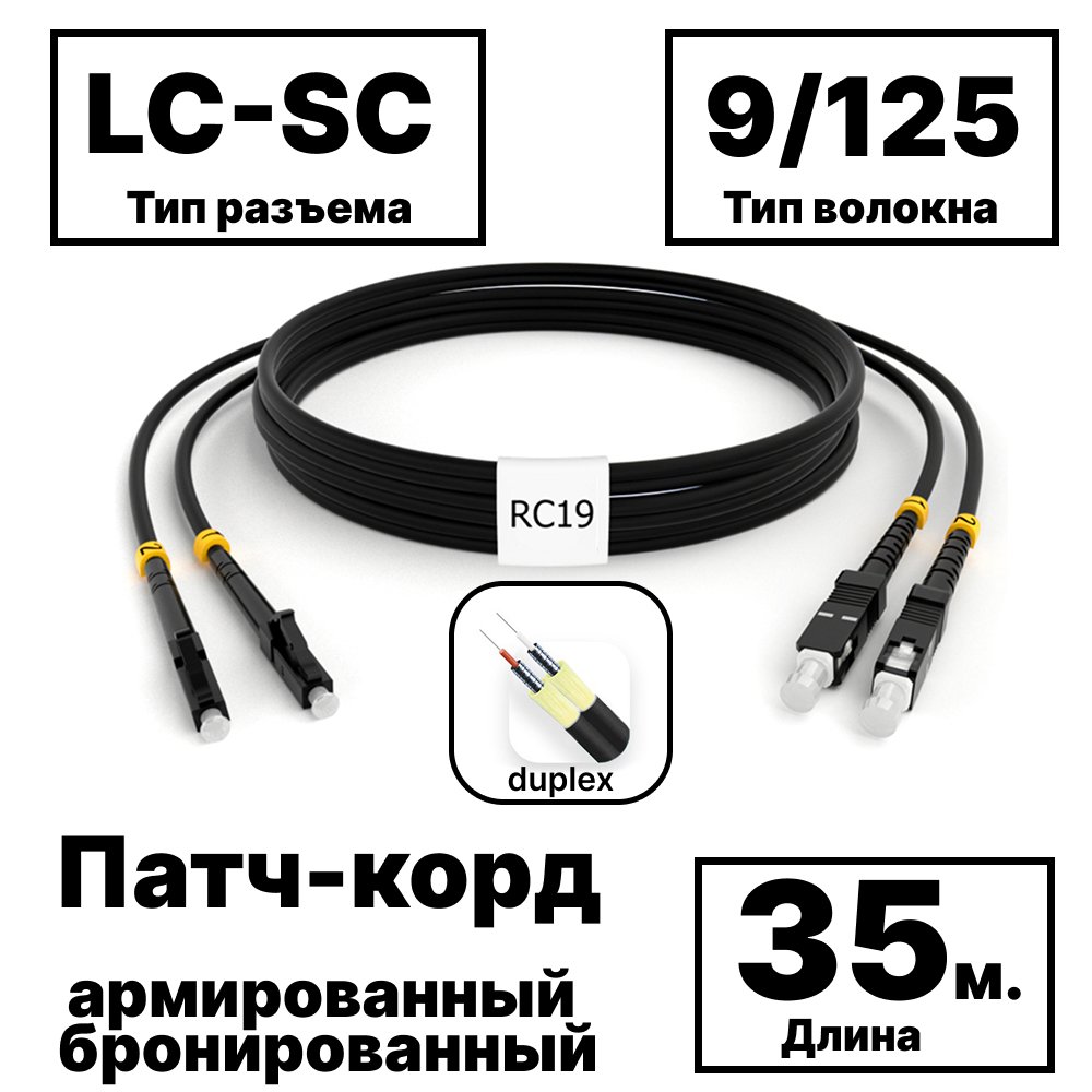 RC19 PC-ARM-2x3,0-2LC/UPC-2SC/UPC-SM-35м-LSZH-BK Патч-корд оптический армированный бронированный duplex LC-SC 9/125 (G.657A1) одномодовый SM (3.0мм) LSZH, цвет черный, 35м