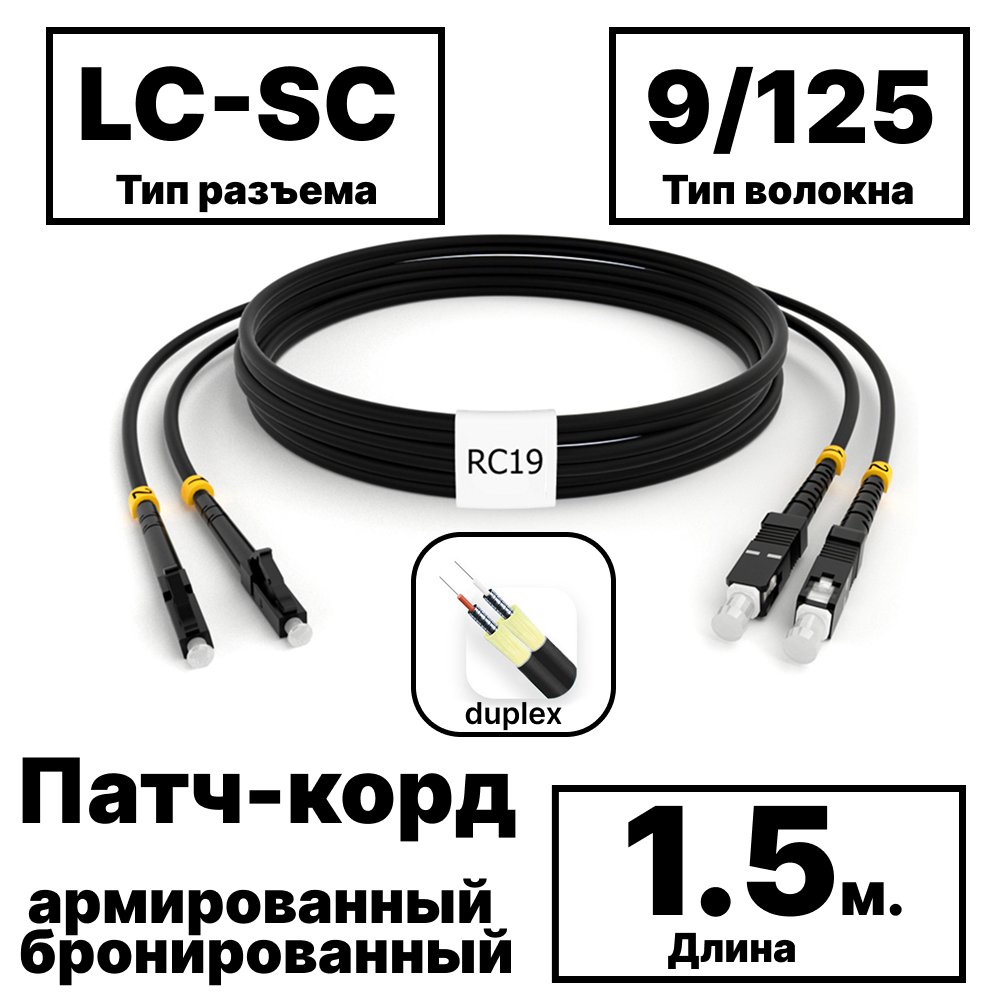 Описание и Характеристики RC19 PC-ARM-2x3,0-2LC/UPC-2SC/UPC-SM-1.5м-LSZH-BK Патч-корд оптический армированный бронированный duplex LC-SC 9/125 (G.657A1) одномодовый SM (3.0мм) LSZH, цвет черный, 1,5м купить недорого в интернет-магазине «Анбик»