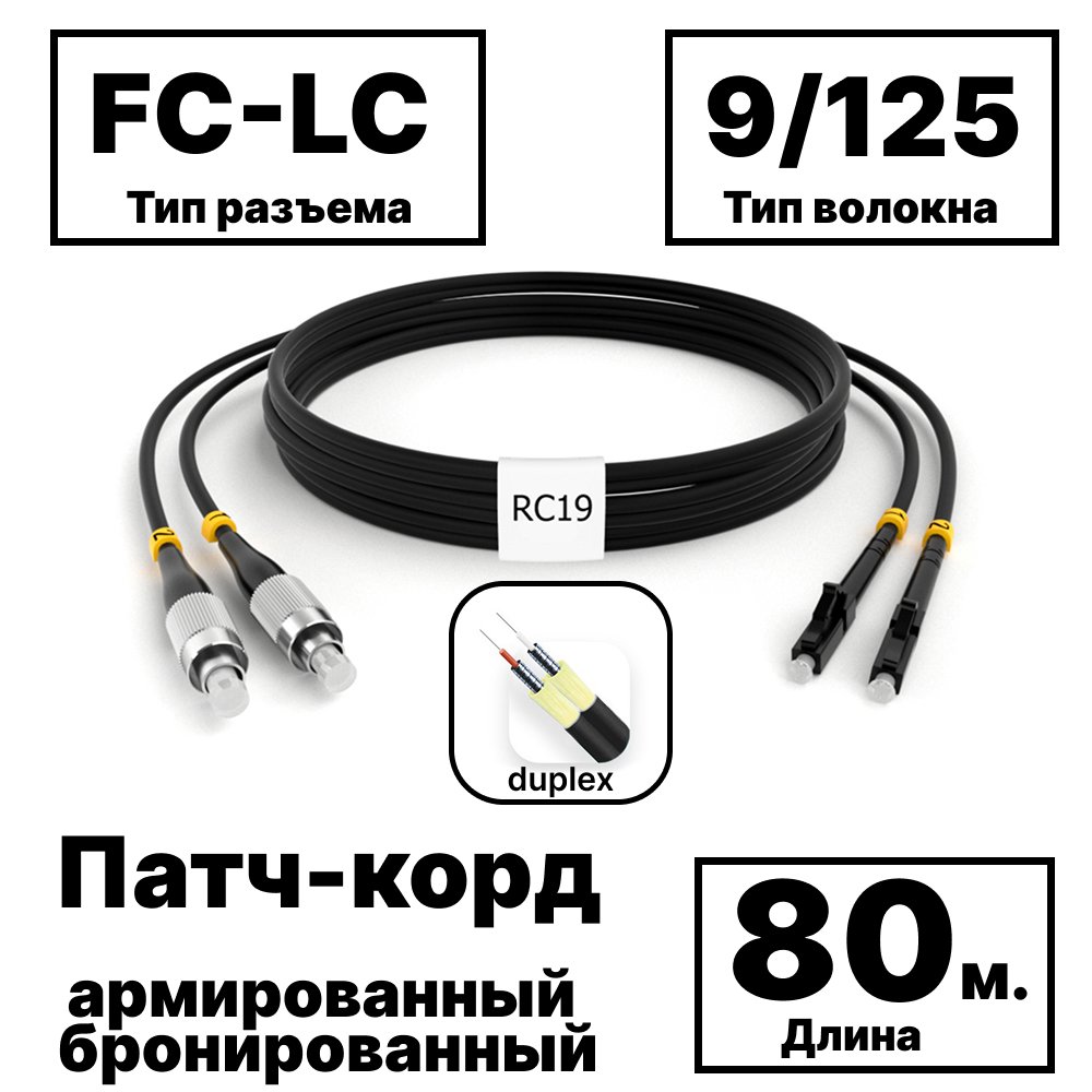 Описание и Характеристики RC19 PC-ARM-2x3,0-2FC/UPC-2LC/UPC-SM-80м-LSZH-BK Патч-корд оптический армированный бронированный duplex FC-LC 9/125 (G.657A1) одномодовый SM (3.0мм) LSZH, цвет черный, 80м купить недорого в интернет-магазине «Анбик»