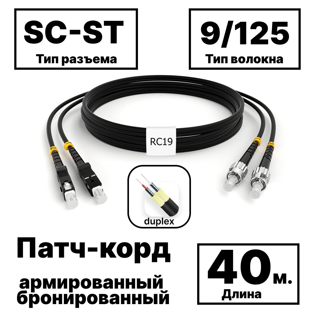 RC19 PC-ARM-2x3,0-2SC/UPC-2ST/UPC-SM-40м-LSZH-BK Патч-корд оптический армированный бронированный duplex SC-ST 9/125 (G.657A1) одномодовый SM (3.0мм) LSZH, цвет черный, 40м: полное описание, характеристики, инструкции, отзывы покупателей, фотографии. Широкий выбор на сайте anbik.ru