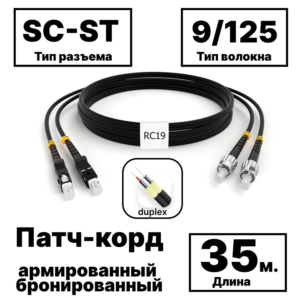 RC19 PC-ARM-2x3,0-2SC/UPC-2ST/UPC-SM-35м-LSZH-BK Патч-корд оптический армированный бронированный duplex SC-ST 9/125 (G.657A1) одномодовый SM (3.0мм) LSZH, цвет черный, 35м