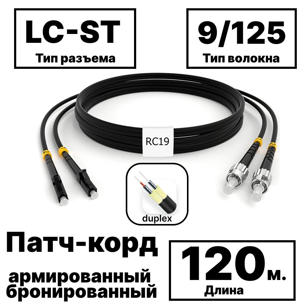 RC19 PC-ARM-2x3,0-2LC/UPC-2ST/UPC-SM-120м-LSZH-BK Патч-корд оптический армированный бронированный duplex LC-ST 9/125 (G.657A1) одномодовый SM (3.0мм) LSZH, цвет черный, 120м: полное описание, характеристики, инструкции, отзывы покупателей, фотографии. Широкий выбор на сайте anbik.ru