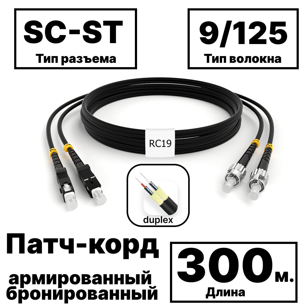 RC19 PC-ARM-2x3,0-2SC/UPC-2ST/UPC-SM-300м-LSZH-BK Патч-корд оптический армированный бронированный duplex SC-ST 9/125 (G.657A1) одномодовый SM (3.0мм) LSZH, цвет черный, 300м