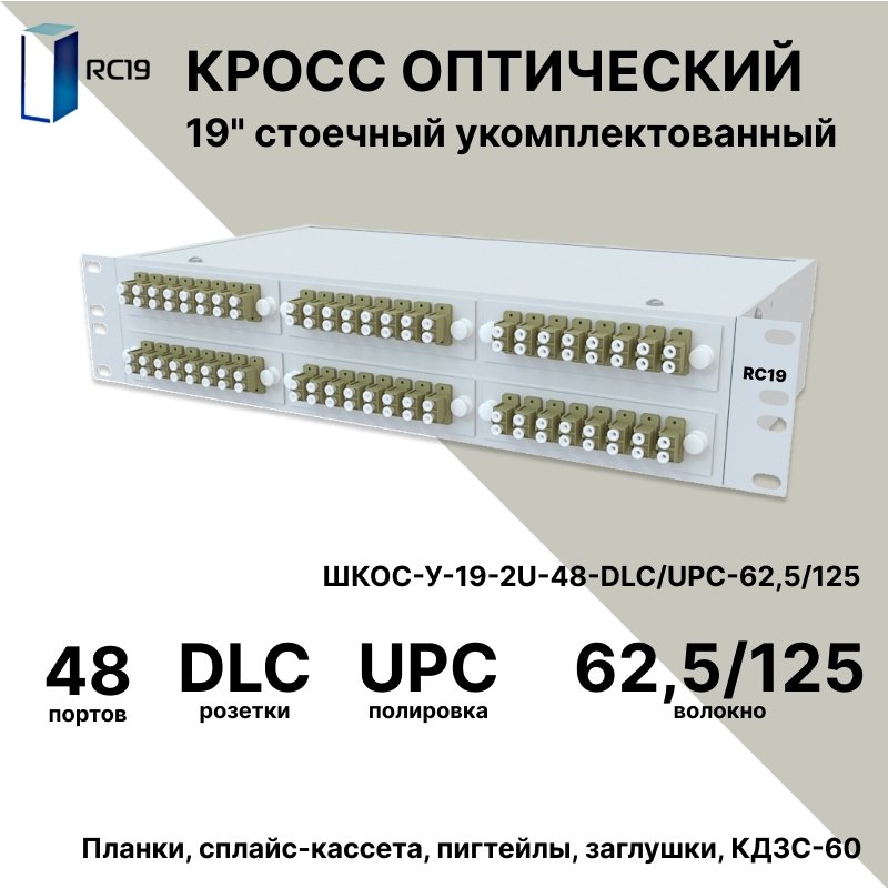 Описание и Характеристики RC19 ШКОС-У-19-2U-48-DLC/UPC-62,5/125 Кросс оптический 19" стоечный 2U на 48 портов LC/UPC duplex 62,5/125мкм укомплектованный оптический бокс (пигтейл LC 62,5/125-96шт, розетка DLC-48шт, КДЗС-96шт) купить недорого в интернет-магазине «Анбик»