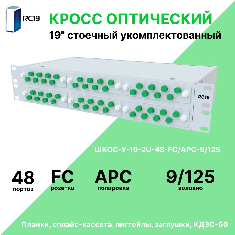 RC19 ШКОС-У-19-2U-48-FC/APC-9/125 Кросс оптический 19" стоечный 2U на 48 портов FC/APC 9/125мкм укомплектованный оптический бокс (пигтейл FC/APC 9/125-48шт, розетка FC-48шт, КДЗС-48шт): полное описание, характеристики, инструкции, отзывы покупателей, фотографии. Широкий выбор на сайте anbik.ru