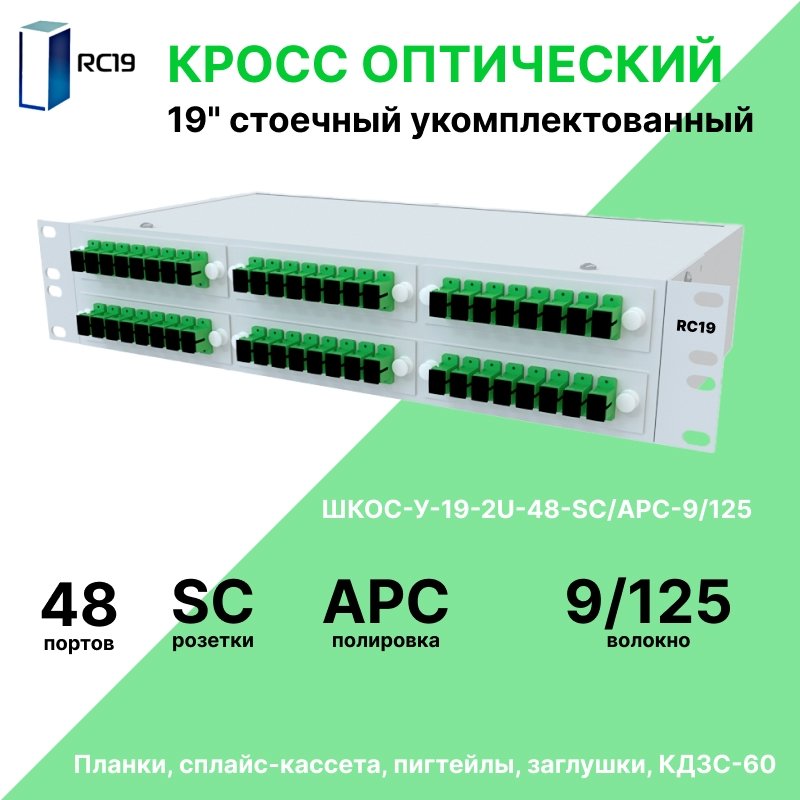 RC19 ШКОС-У-19-2U-48-SC/APC-9/125 Кросс оптический 19" стоечный 2U на 48 портов SC/APC 9/125мкм укомплектованный оптический бокс (пигтейл SC/APC 9/125-48шт, розетка SC/APC-48шт, КДЗС-48шт): полное описание, характеристики, инструкции, отзывы покупателей, фотографии. Широкий выбор на сайте anbik.ru