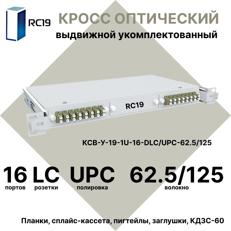 RC19 КСВ-У-19-1U-16-DLC/UPC-62.5/125 Кросс оптический 19" выдвижной 1U на 16 портов DLC 62,5/125мкм укомплектованный (пигтейл LC 62.5/125-32шт, розетка DLC-16шт, сплайс кассета с крышкой-1шт, КДЗС-32шт): полное описание, характеристики, инструкции, отзывы покупателей, фотографии. Широкий выбор на сайте anbik.ru