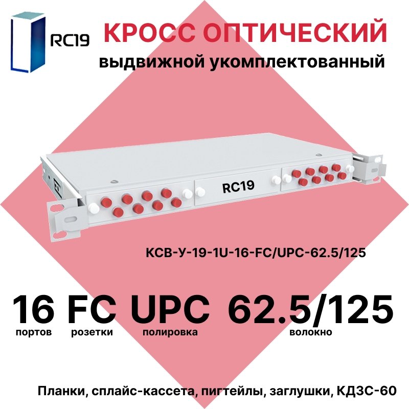 RC19 КСВ-У-19-1U-16-FC/UPC-62.5/125 Кросс оптический 19" выдвижной 1U на 16 портов FC 62,5/125мкм укомплектованный (пигтейл FC 62,5/125-16шт, розетка FC-16шт, сплайс кассета с крышкой-1шт, КДЗС-16шт): полное описание, характеристики, инструкции, отзывы покупателей, фотографии. Широкий выбор на сайте anbik.ru