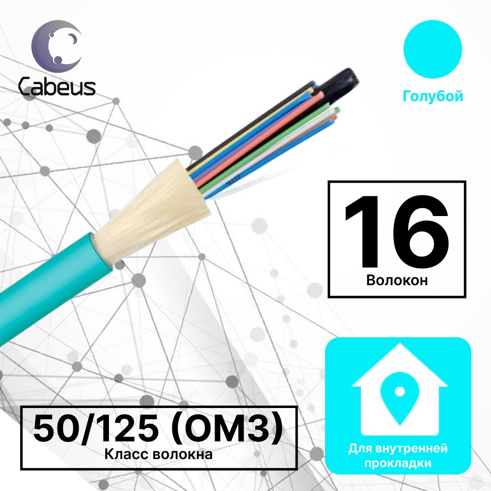 Кабель волоконно-оптический 50 125 (OM3) многомодовый,16 волокон, плотное буферное покрытие, для внутренней прокладки (-25C ~ +75),FR