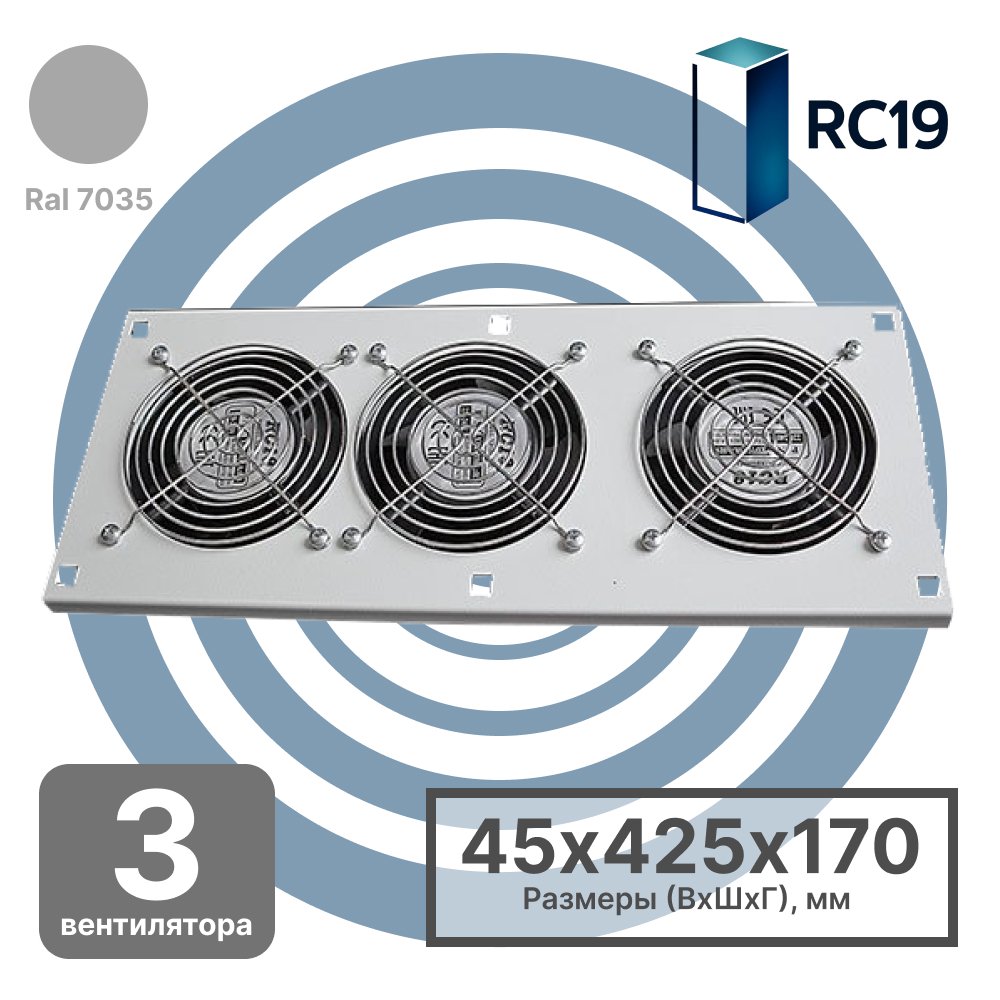 RC19 MV-400-2-3 Модуль вентиляторный потолочный 170х425, 3 вентилятора, цвет серый Ral 7035