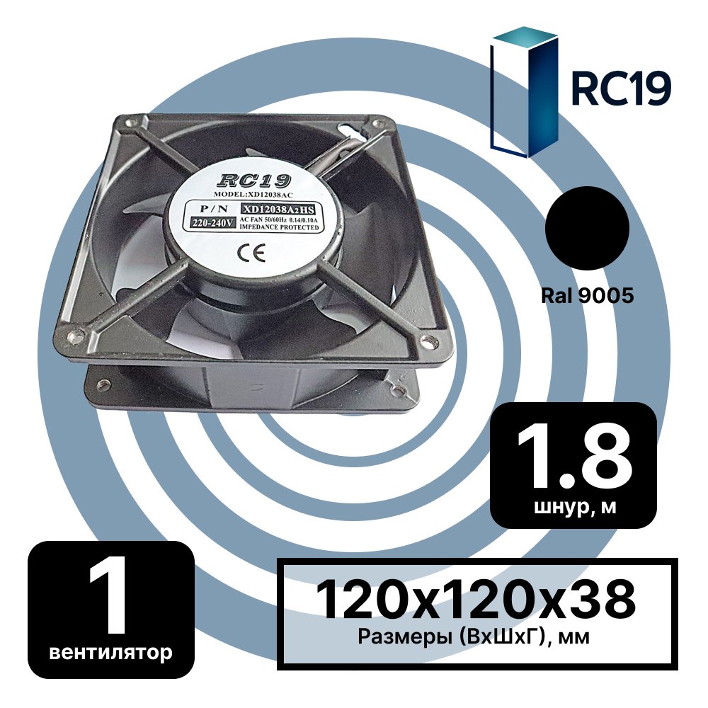 RC19 MV-1-1,8 Вентилятор охлаждения 220В для установки в настенные шкафы, шнур питания 1,8 м, 120х120х38мм