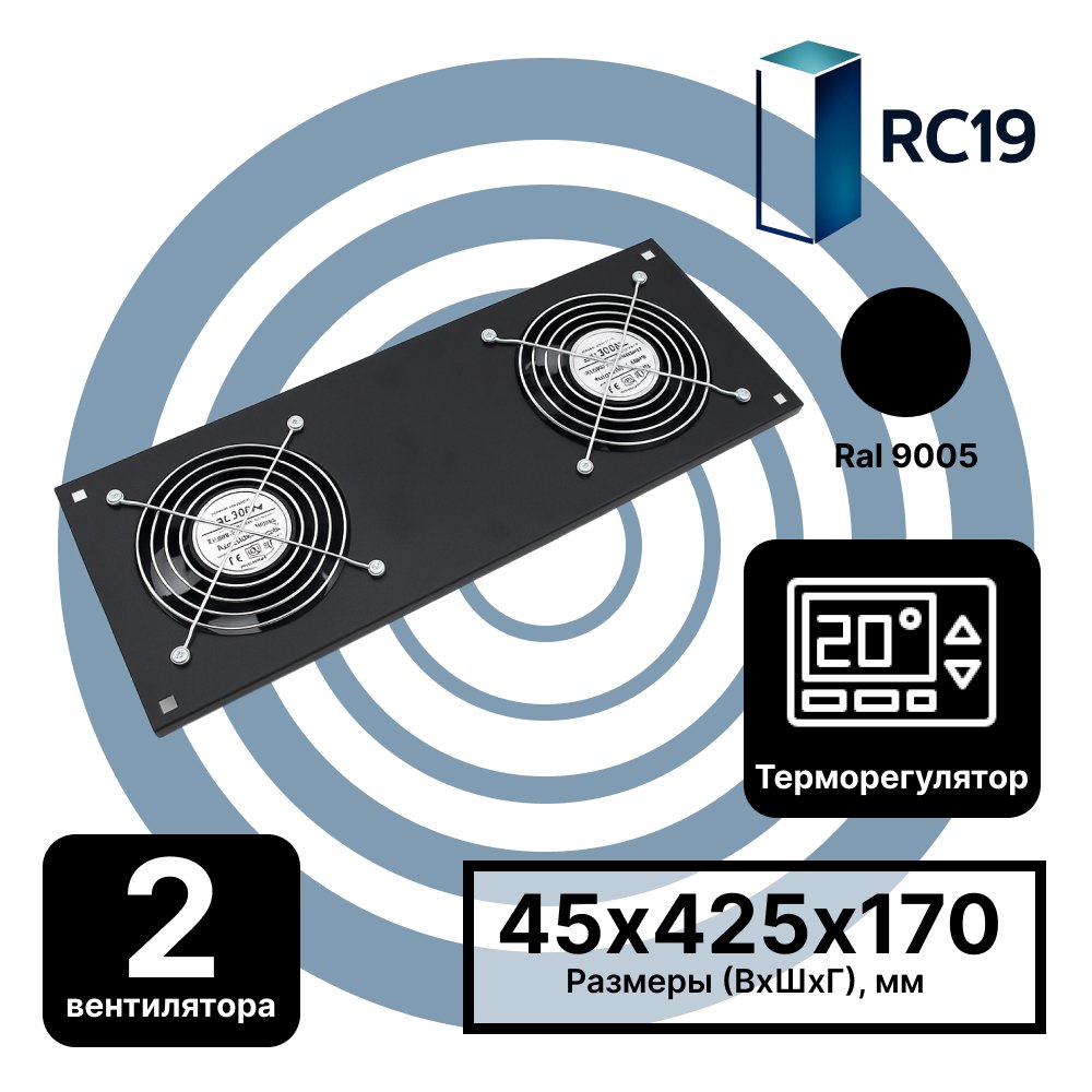 Описание RC19 MV-400-2C-9005 Модуль вентиляторный потолочный 170х425, 2 вентилятора с термодатчиком, цвет черный RAL9005