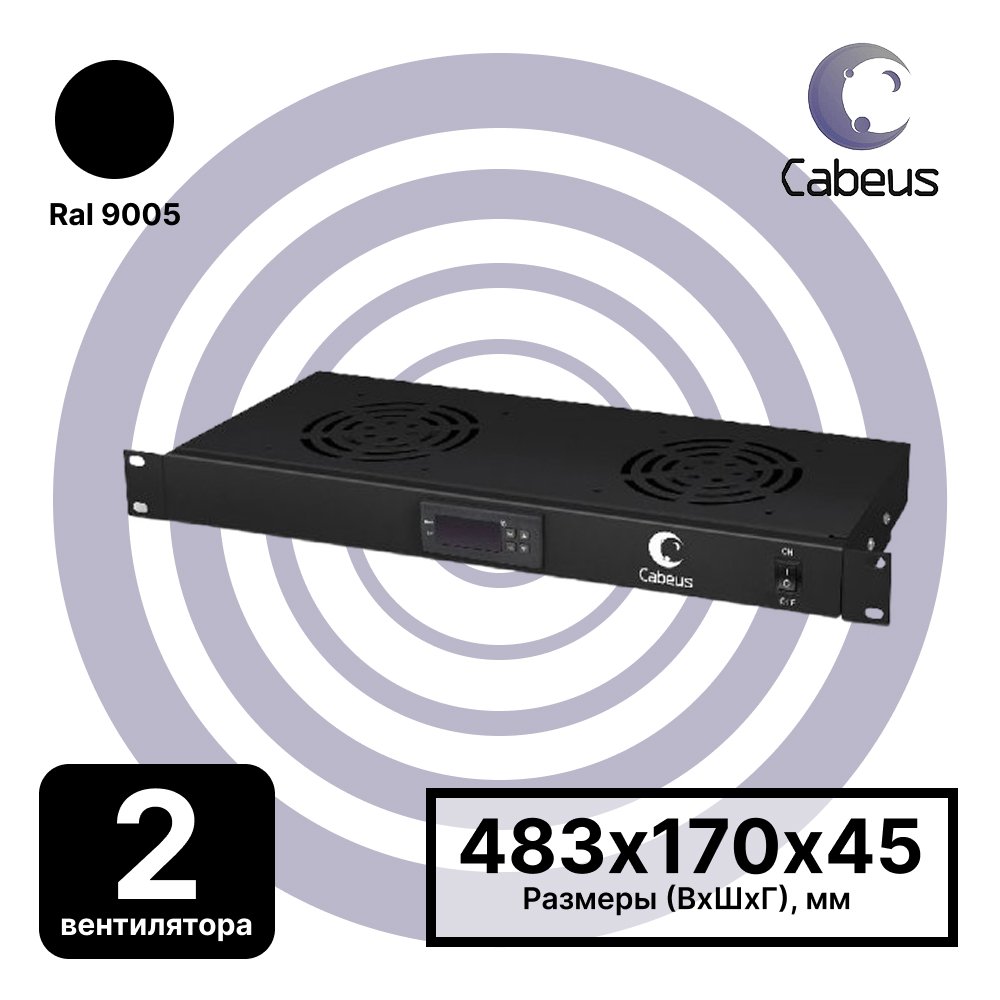Cabeus JG02-BK Модуль вентиляторный 19", глубина 170 mm, 2 вентилятора, с цифровым термодатчиком, цвет черный (RAL 9004)