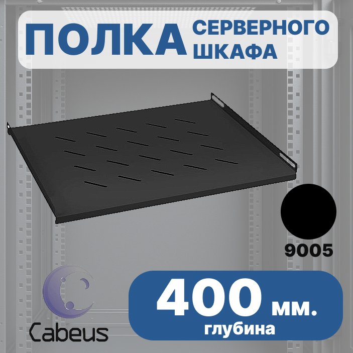 Cabeus SH-J018-FC-600m-BK Полка 19" перфорированная глубиной 400 мм для напольных и настенных шкафов глубиной 600 мм, цвет черный (RAL 9004)