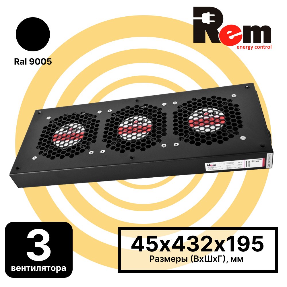 | R-FAN-3T-9005 | Модуль вентиляторный, 3 вентилятора с терморегулятором, чёрный | в крышу | 3 | разъем IEC 60320 C14 | Черный | Терморегулятор |