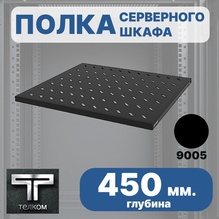 ТЕЛКОМ ПСЛ.450.60.9005М Полка стационарная 19" (Глубина=450мм) для напольных шкафов ТС с глубиной 600мм, цвет черный (RAL9005)