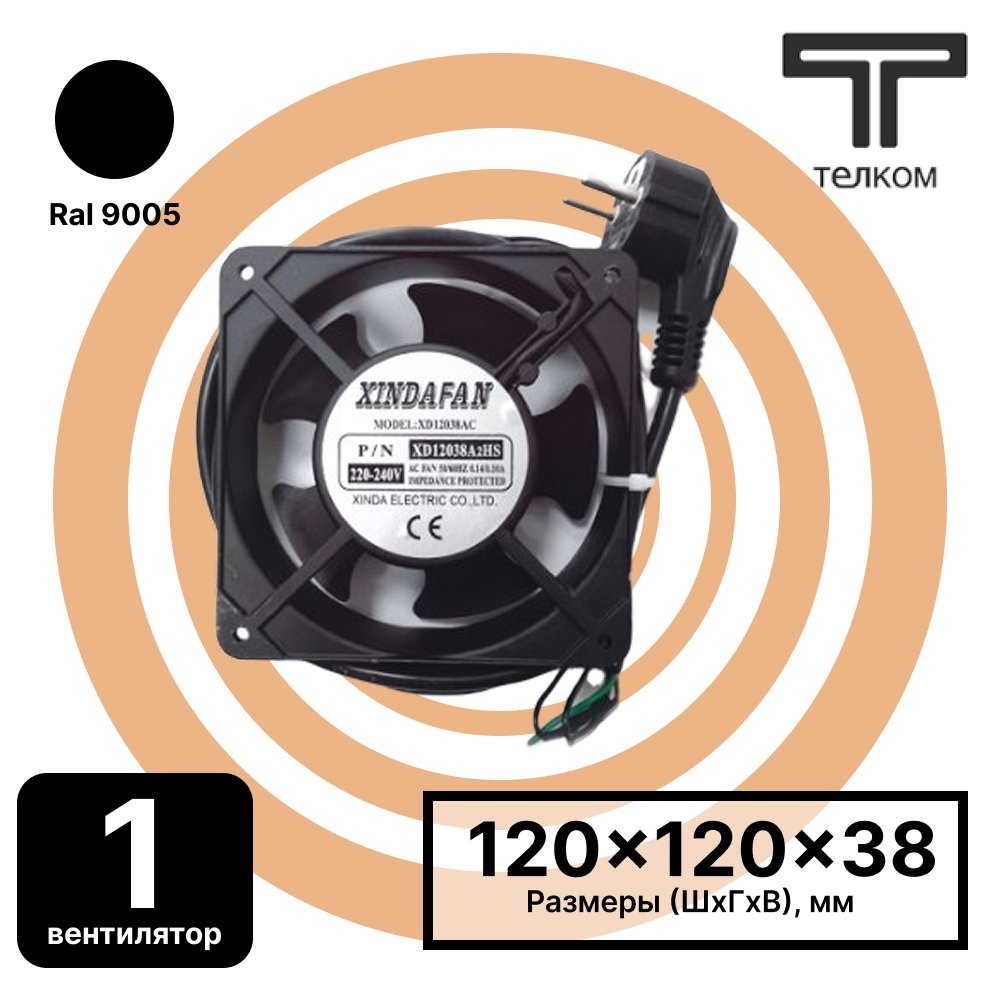 ТЕЛКОМ ВМ-1-1,8м Вентилятор охлаждения 220В для установки в настенные шкафы (120x120x38mm) с кабелем питания