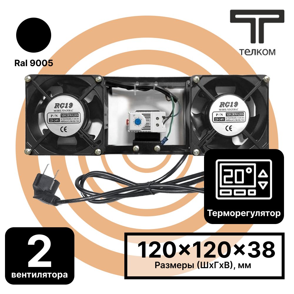 ТЕЛКОМ МВП-2-Т-1,8м Модуль вентиляторный потолочный с 2-мя вентиляторами (120x120x38mm) с термостатом 0-60°C, c кабелем питания, для установки в настенные шкафы серии TL