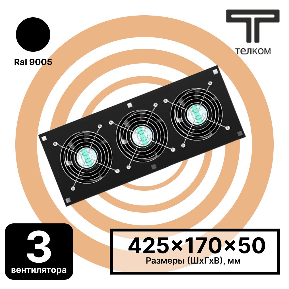 ТЕЛКОМ ВМ-К-3.9005 Вентиляторный модуль охлаждения (3 вентилятора) монтаж в крышу для напольных шкафов (чёрный RAL9005)