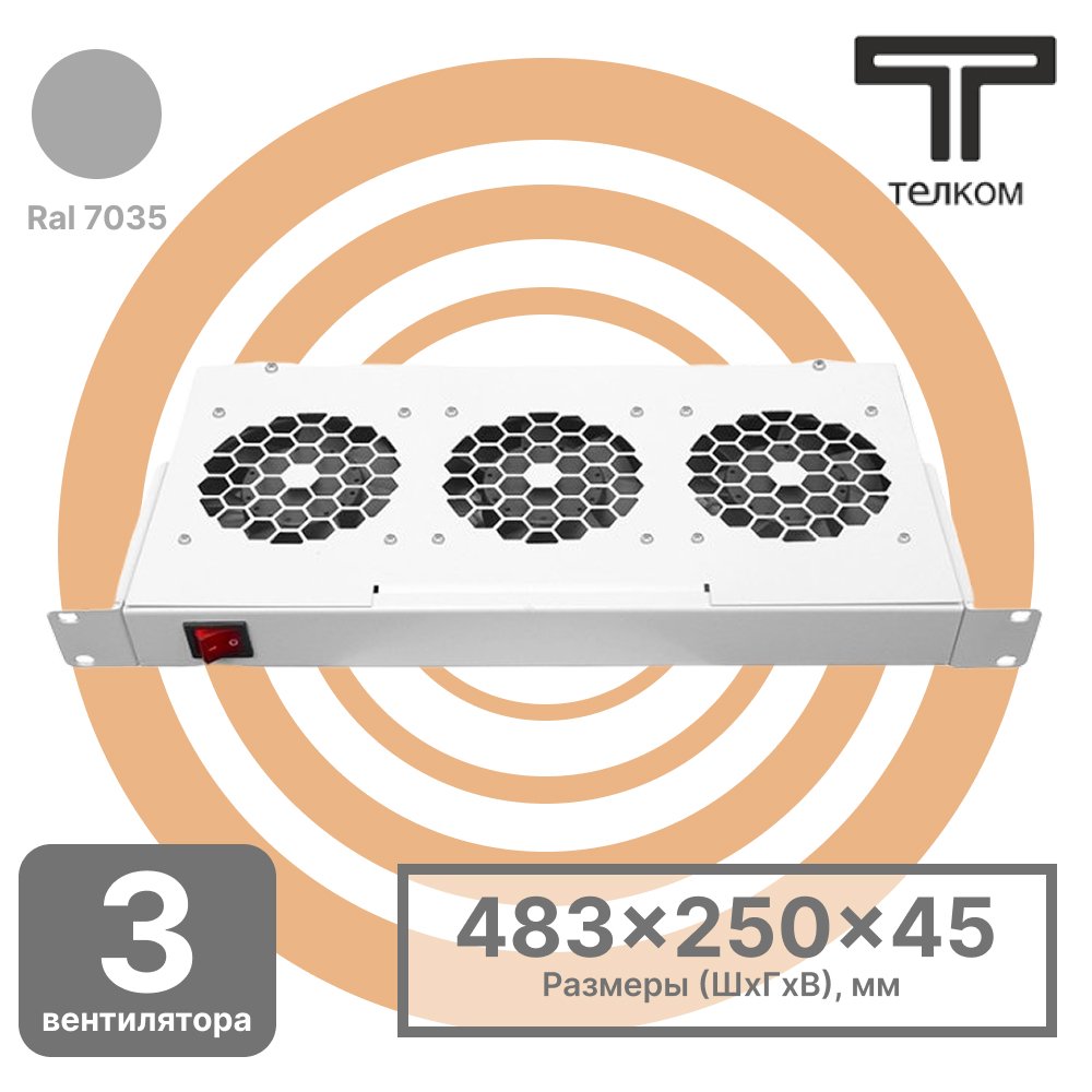 Вентиляторный модуль стоечный на 3 вентилятора с установкой в монтажные перфорированые профили напольных шкафов 19 дюймовых Телком