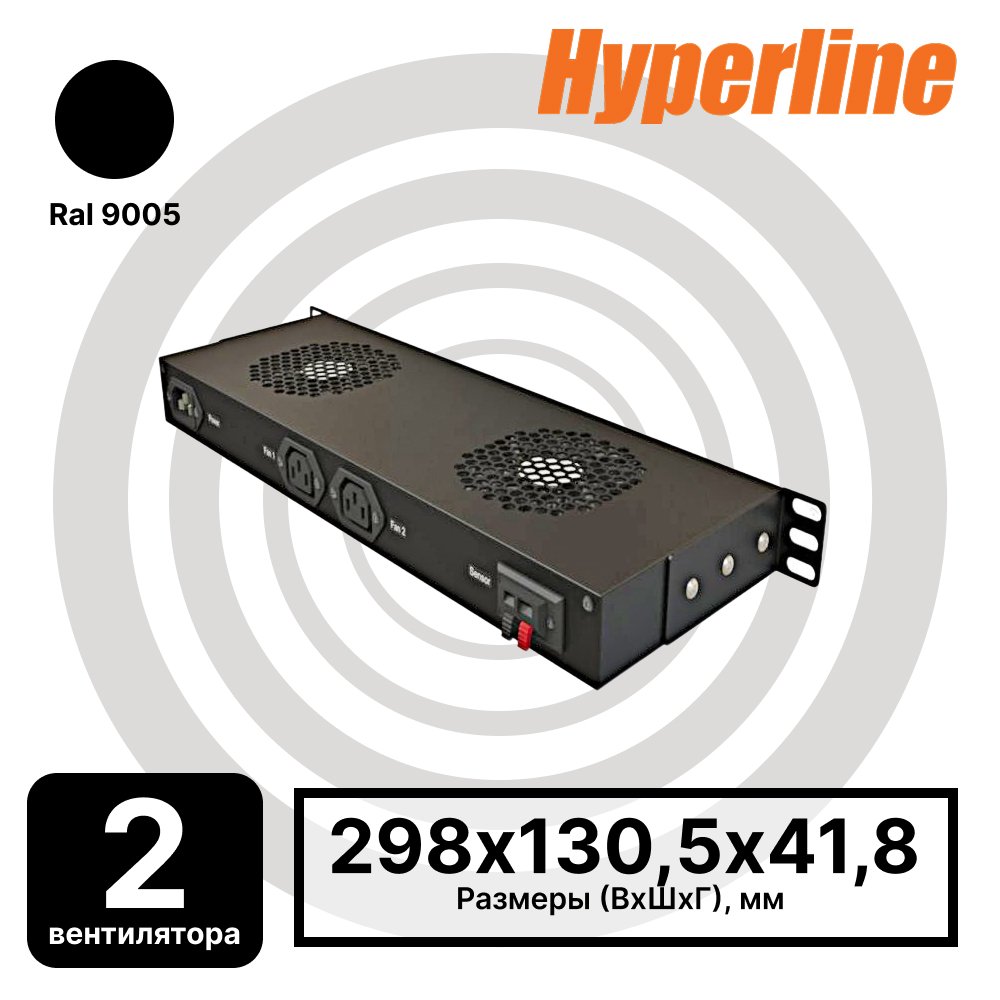 Hyperline TRFA-MICR-2F-RAL9004 Модуль вентиляторный 19", 1U, глубиной 170мм, с термостатом и 2-я вентиляторами, номинальная мощность 35.20 Вт, цвет черный (RAL 9004)