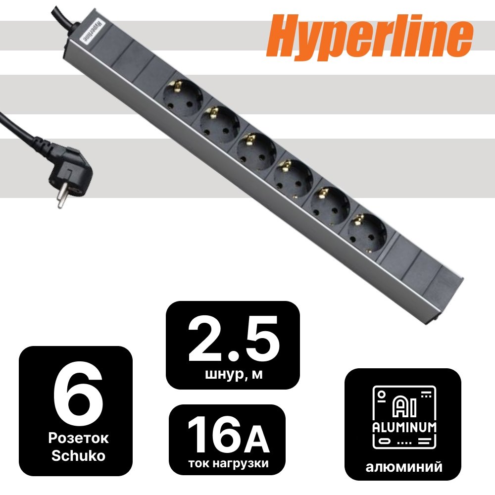 Описание и Характеристики Блок розеток для 19" шкафов, горизонтальный, 6 универсальных розеток, 16A, шнур 2.5м купить в интернет-магазине «Анбик»