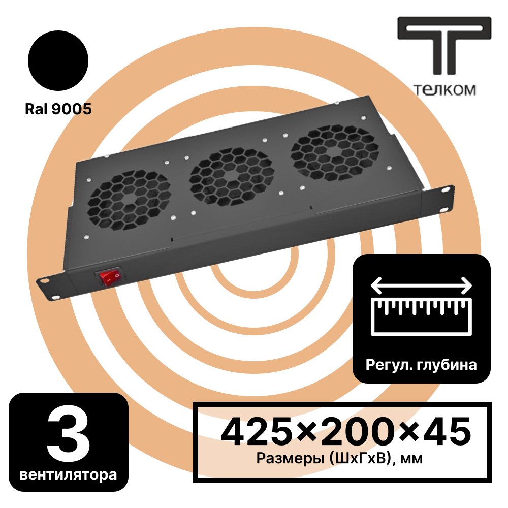 Описание и Характеристики ТЕЛКОМ ВМ-19-3.9005 Вентиляторный 19" модуль 1U (3 вентилятора) c регулируемой глубиной 200-310 мм, цвет черный RAL 9005 купить недорого в интернет-магазине «Анбик»