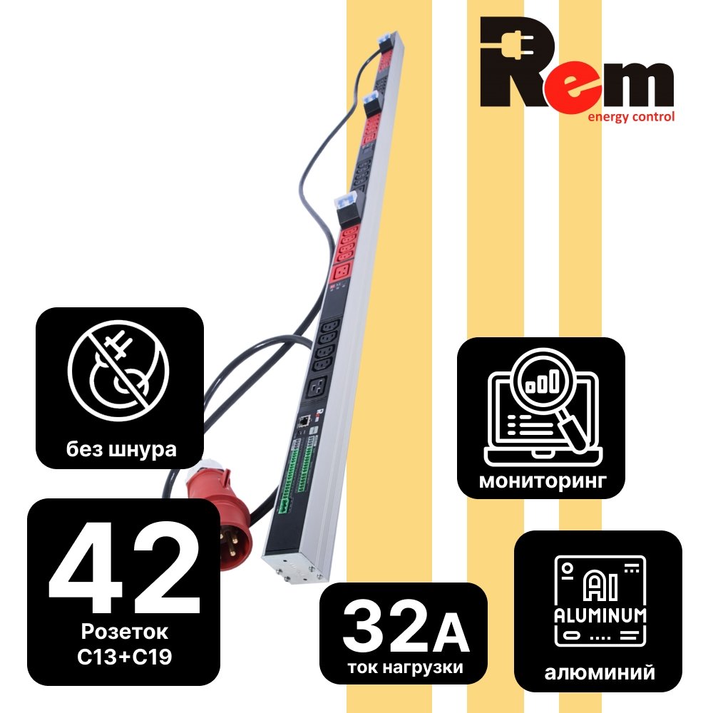 Rem R-2MC3-3x32-36C13-6C19-A-MI-2100-3-3PN Верт блок розеток Rem-2MC,LINUX,мониторинг,измерение,3~32A,авт,36C13,6C19,2100мм,вхIEC309,шнур 3м: полное описание, характеристики, инструкции, отзывы покупателей, фотографии. Широкий выбор на сайте anbik.ru