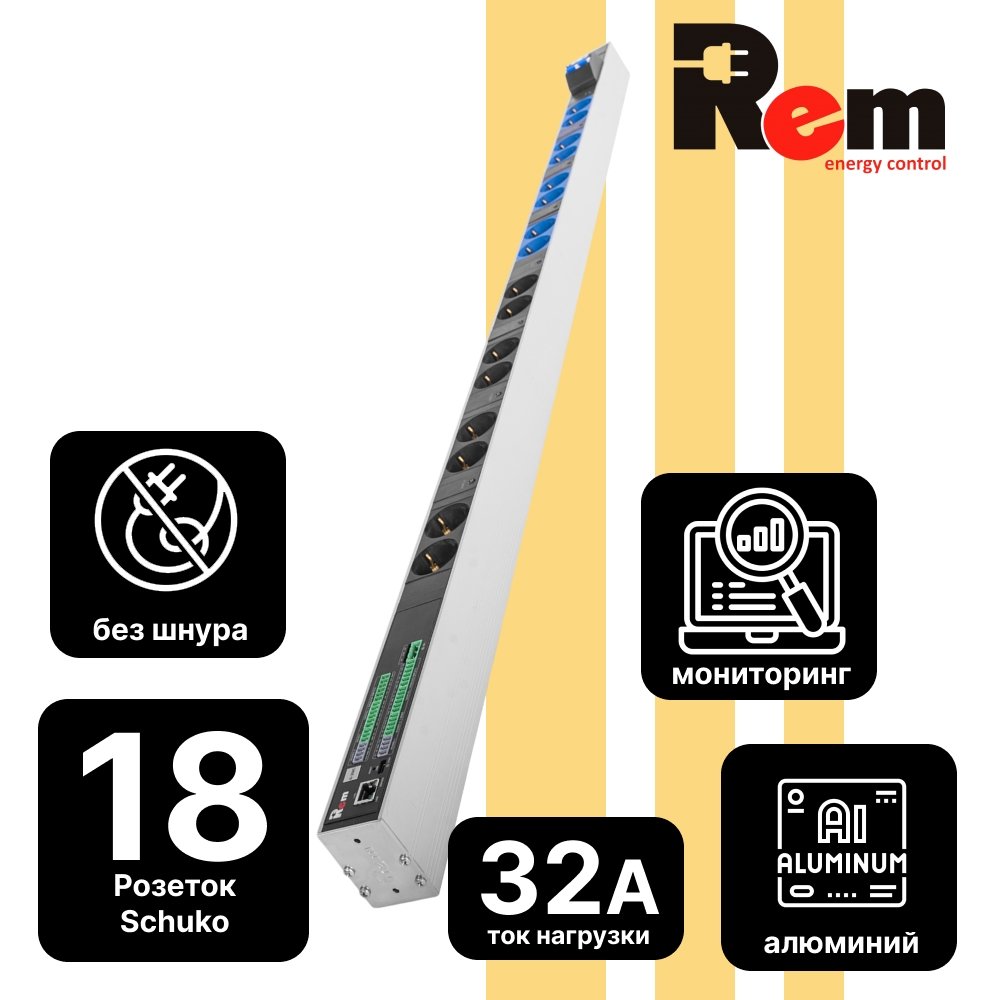 Описание и Характеристики Rem R-2MC3-32-8x2S-A-1420-K Верт блок розеток Rem-2MC,LINUX,мониторинг,управление,1~32А,авт,8x2S,1420мм,колодка купить недорого в интернет-магазине «Анбик»