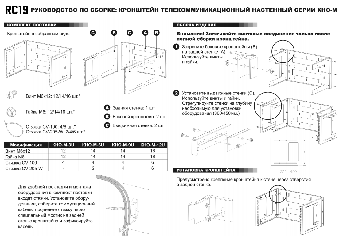 RC19 KNO-М-6U-9005 Кронштейн телекоммуникационный настенный 3U, регулируемая глубина 300-450мм: полное описание, характеристики, инструкции, отзывы покупателей, фотографии. Широкий выбор на сайте anbik.ru