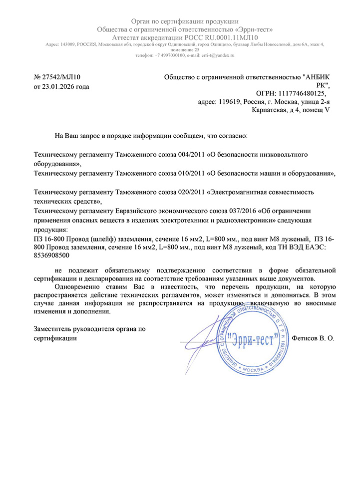 - Под заказ возможно исполнение шлейфов заземления нестандартной длины и оконцевания наконечниками с одной или двух сторон