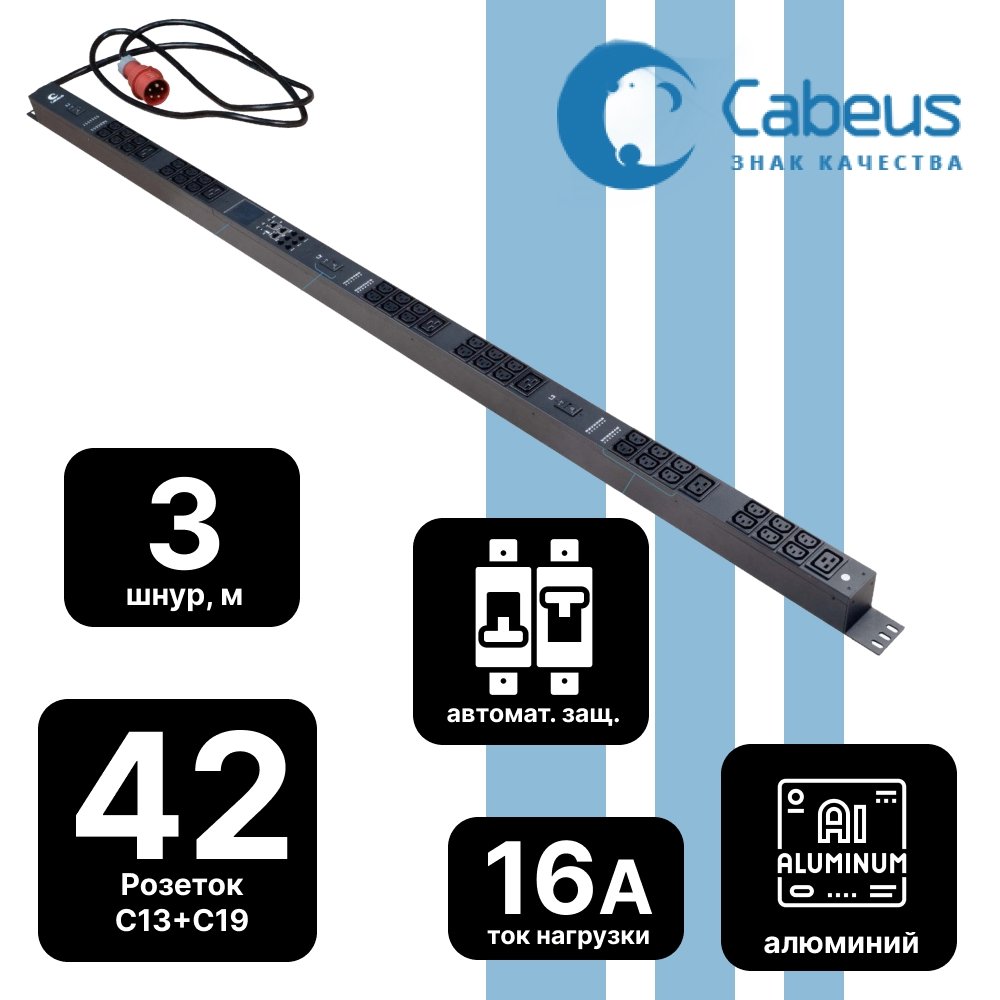 Cabeus SMART-PDU-16-3P-36C13-6C19-I309-M Блок распределения питания, вертикальный, 36 розеток IEC 320 C13, 6 розеток IEC 320 C19, 3 фазы, 16А, 3х16А автомата защиты, 400В, мониторинг, шнур 3м 5х2,5мм с вилкой IEC 60309: полное описание, характеристики, инструкции, отзывы покупателей, фотографии. Широкий выбор на сайте anbik.ru