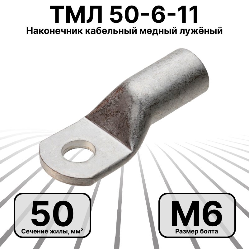 ТМЛ 50-6-11 Наконечник кабельный медный лужёный под болт М6, 50 мм2: полное описание, характеристики, инструкции, отзывы покупателей, фотографии. Широкий выбор на сайте anbik.ru