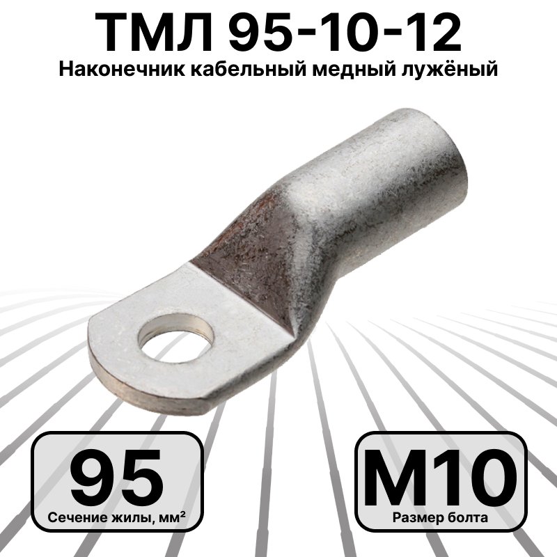 ТМЛ 95-10-12 Наконечник кабельный медный лужёный под болт М10, 95 мм2: полное описание, характеристики, инструкции, отзывы покупателей, фотографии. Широкий выбор на сайте anbik.ru